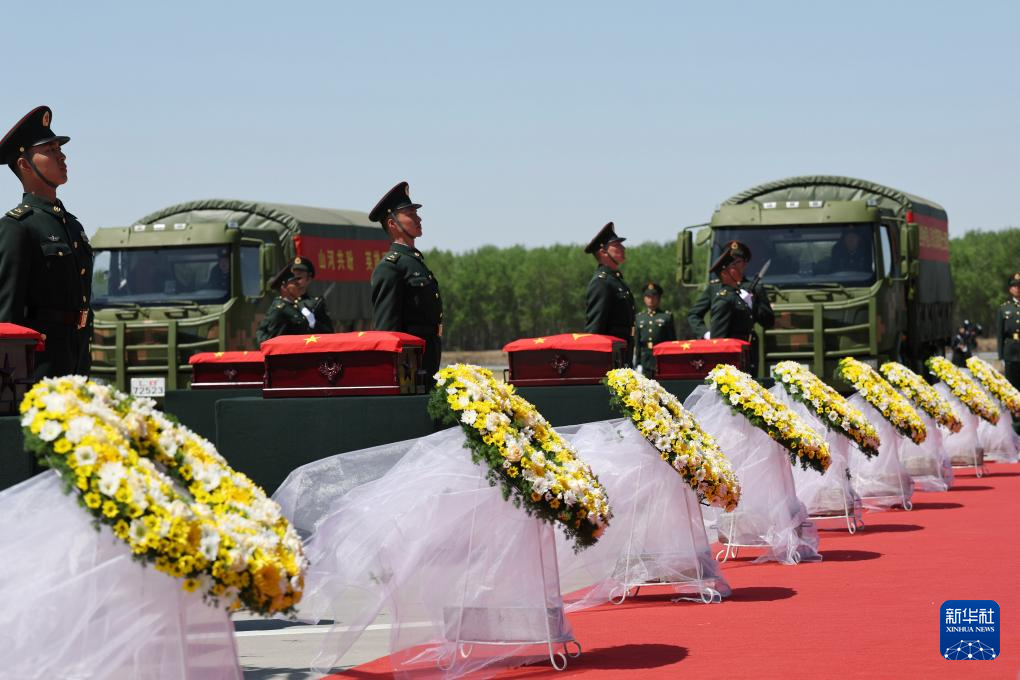 4月22日上午,第十三批在韩中国人民志愿军烈士遗骸由中国空军运-20B从韩国接回辽宁沈阳。12位志愿军烈士英灵及146件遗物回到祖国怀抱。