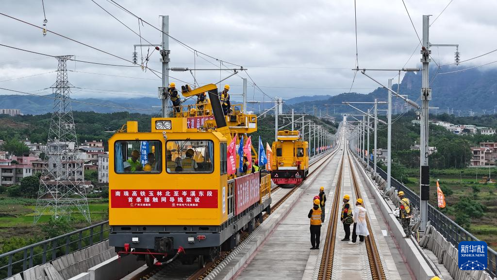 4月23日,南珠高铁玉岑段首条接触网导线在广西玉林北至容县南区间成功架设,容县南站、岑溪东站也于近期相继封顶,标志着工程建设全面进入冲刺关键期。南珠高铁玉岑段西起玉林北站,东至梧州市岑溪市,新建容县南站、岑溪东站,设计时速350公里,是南珠高铁南玉段的重要延伸。项目建成通车后,将有力推动北部湾经济区与粤港澳大湾区“两湾联动”融合发展,为沿线经济社会高质量发展注入强劲动能。